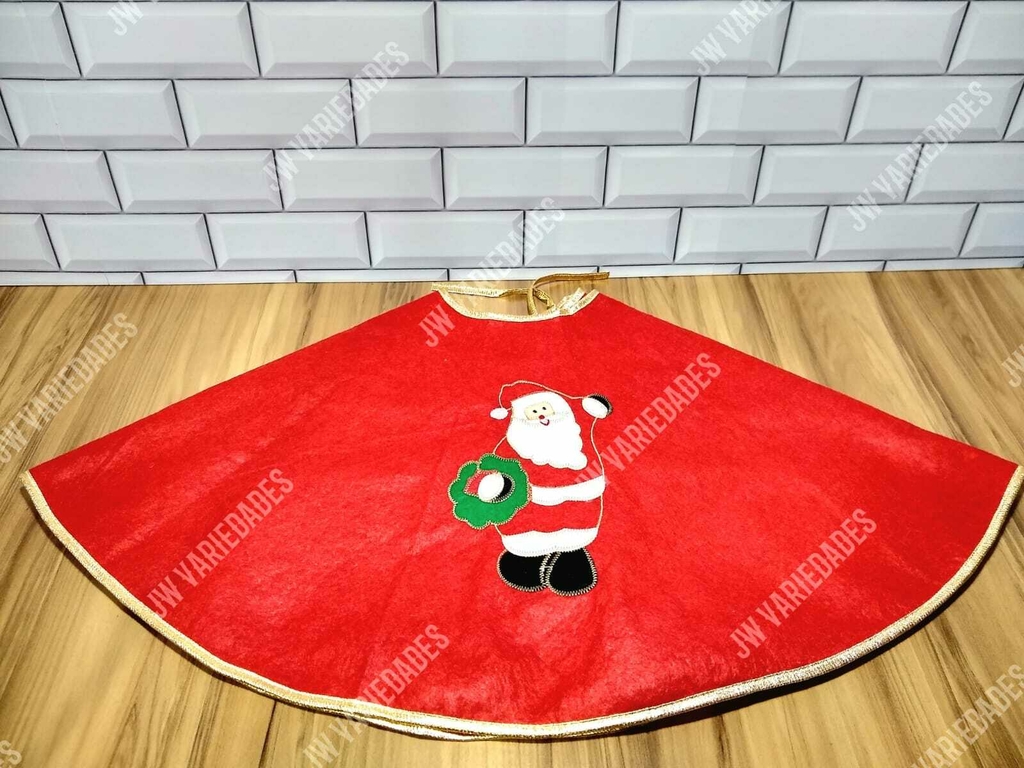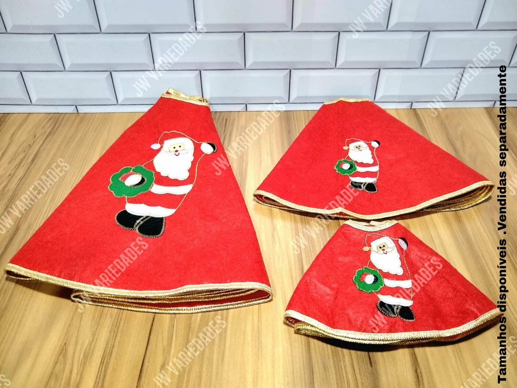 Decorado com desenho de Papai Noel traz graça, carinho e beleza a sua decoração de Natal, encantando a todos. A saia para árvore vai fazer o acabamento final a sua decoração natalina e ainda pode ser usada para acomodar os presentes não deixando diretamente ao chão.